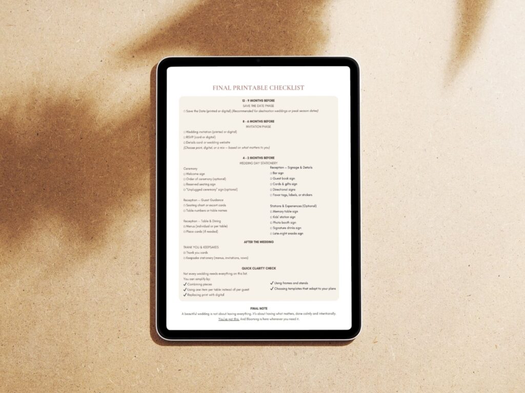 • Um checklist premium de estacionário de casamento